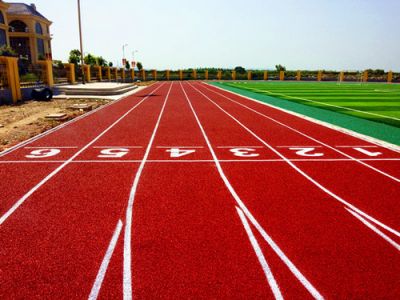 塑料跑道又稱全天候田徑運(yùn)動(dòng)跑道,由聚氨預(yù)聚體、混合聚醚、廢輪胎橡膠、EPDM橡膠?;蚬鑀U顆粒、顏料、助劑、填料組成。塑膠跑道具有平整度好、抗壓強(qiáng)度高、硬度彈性適當(dāng)、物理性能穩(wěn)定的特性,有利于運(yùn)動(dòng)員速度和技術(shù)的發(fā)揮,有效地提高運(yùn)動(dòng)成績(jī),降低摔傷率。塑膠跑道是由聚氨酯橡膠等材料組成的,具有一定的彈性和色彩,具有一定的抗紫外線能力和耐老化力,是全天候室外運(yùn)動(dòng)場(chǎng)地坪材料。